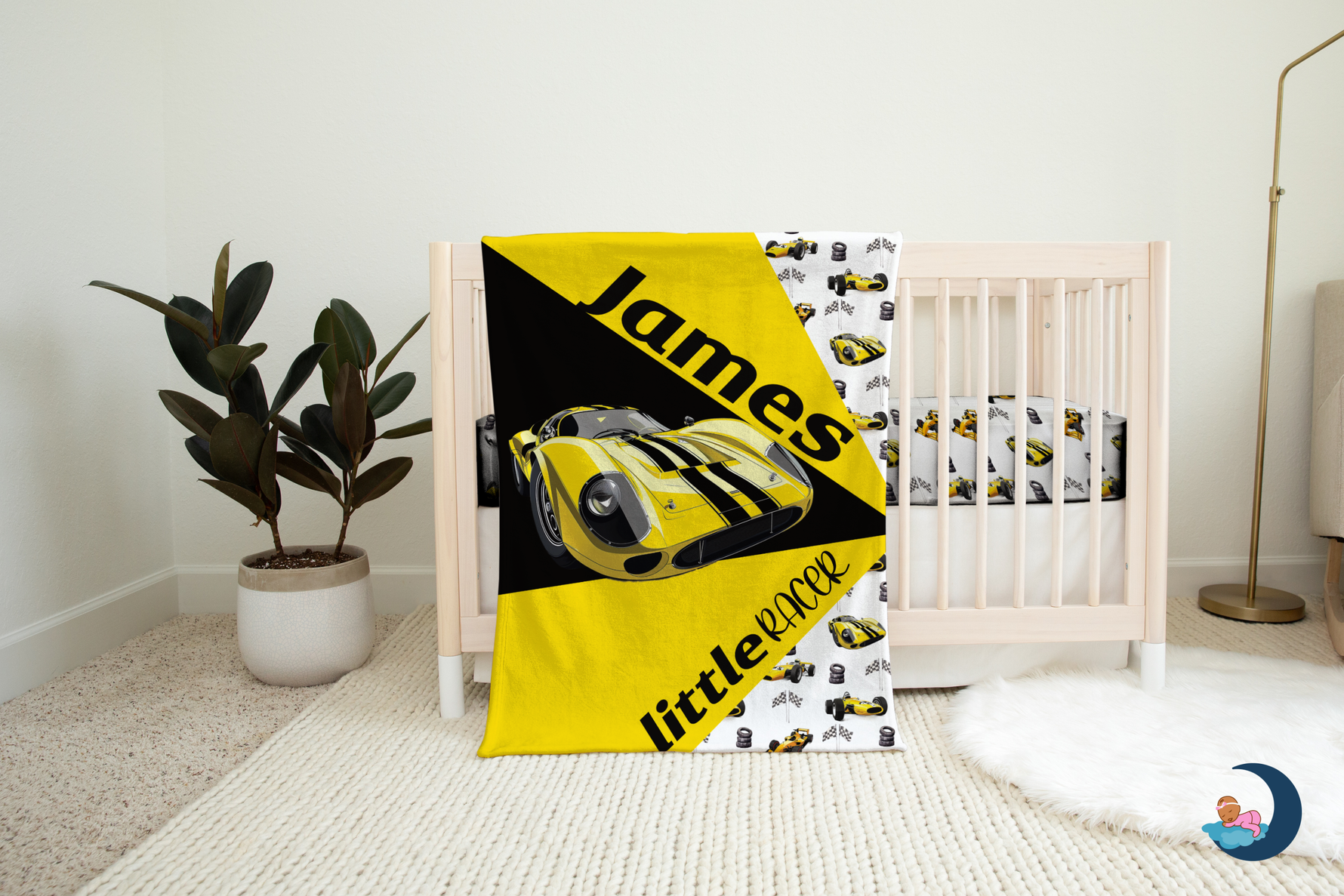 Wrap your little bundle of joy in warmth and comfort with our personalized baby blanket. Start the engine for your little racer with this custom racing nursery décor. The winning racing design offers a brilliantly colorful pattern, while the customized options allow you to create a one-of-a-kind keepsake for your baby.
