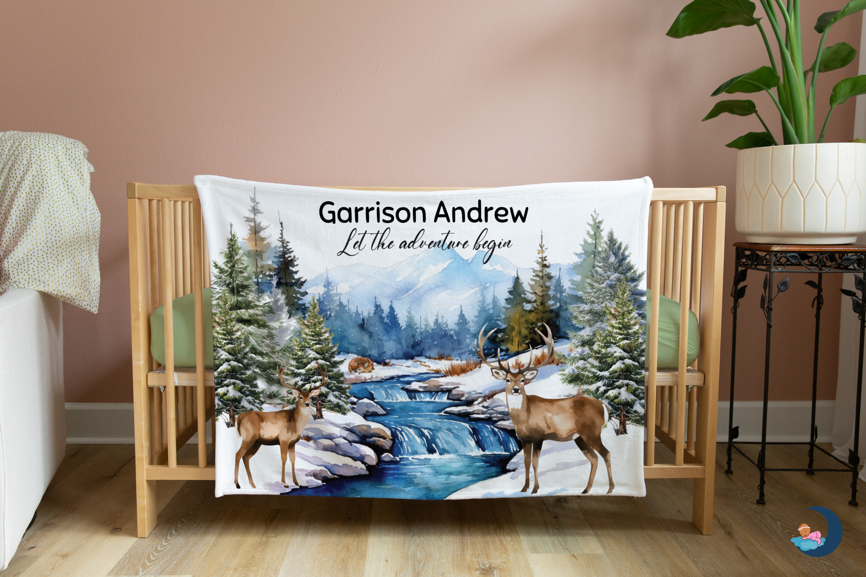 Wrap your little bundle of joy in warmth and comfort with our personalized baby blanket. This winter wonderland design will add a beautiful, adventurous touch to your nursery décor, while the customized options allow you to create a one-of-a-kind keepsake for your baby.