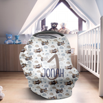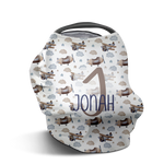 Hand-sewn, stretchy, and breathable, this personalized car seat cover offers the perfect multi-functional baby necessity and/or baby shower gift. The polyester jersey and spandex material make it stretchy enough to fit most car seats to protect your little one from big germs as well as breathable enough to function as a nursing cover to comfortably feed baby.