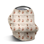Hand-sewn, stretchy, and breathable, this personalized car seat cover offers the perfect multi-functional baby necessity and/or baby shower gift. The polyester jersey and spandex material make it stretchy enough to fit most car seats to protect your little one from big germs as well as breathable enough to function as a nursing cover to comfortably feed baby.