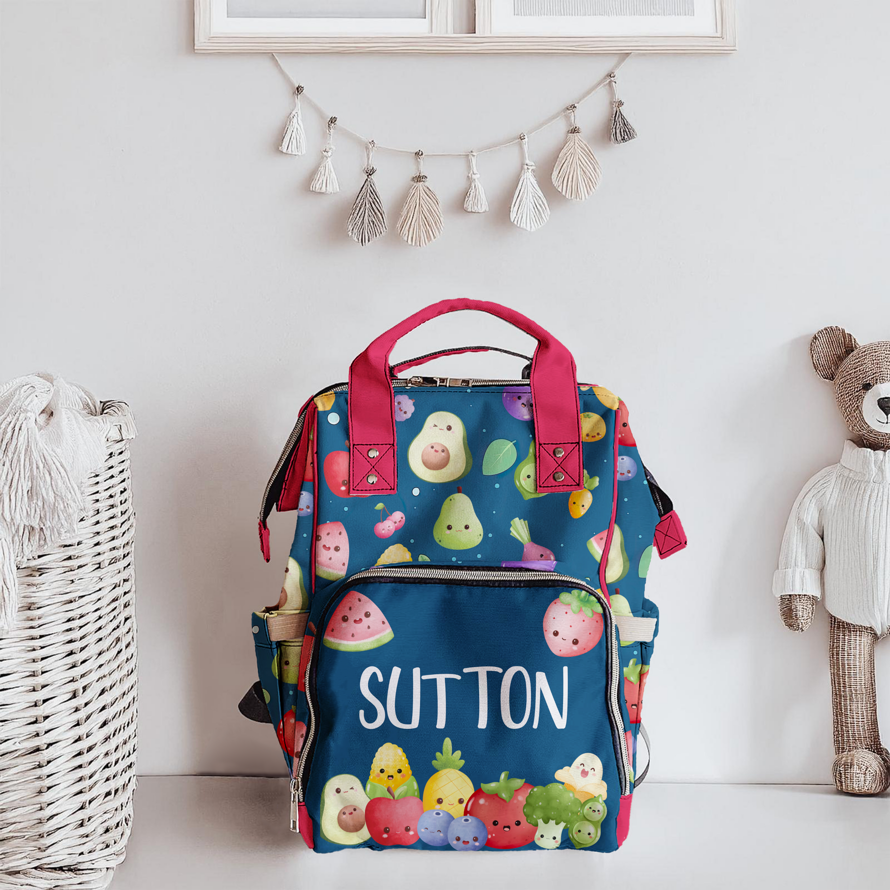 Add a touch of personalization to your parenting essentials with our Kawaii Fruits 'n Veggies Diaper Bag. Crafted with convenience and style in mind, this multi-functional backpack is a must-have for on-the-go parents.