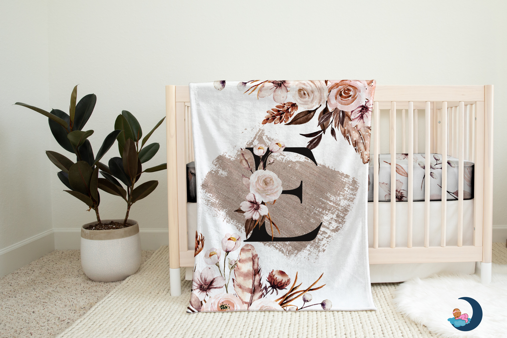 Wrap your little one in cozy boho charm with this personalized floral initial baby blanket. Featuring soft neutral blooms, rustic feathers, and a beautifully styled monogram, it’s perfect for newborn photos, nursery décor, and unforgettable baby shower gifting. Ultra-soft and gentle for everyday snuggles, this keepsake blanket adds a warm, earthy elegance to your baby’s world.