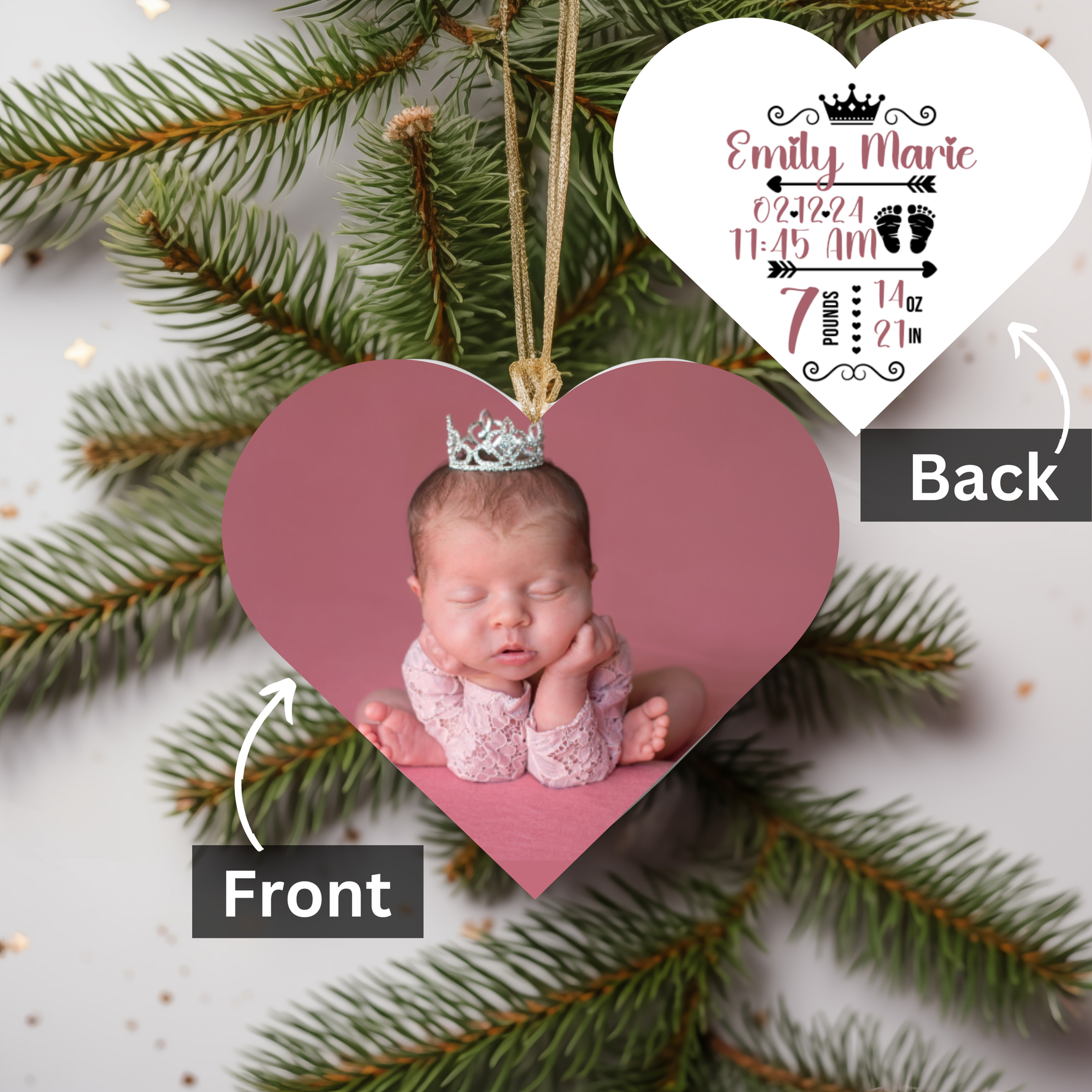 Photo and Birth Stats Heart-Shaped Christmas Ornament (A026)