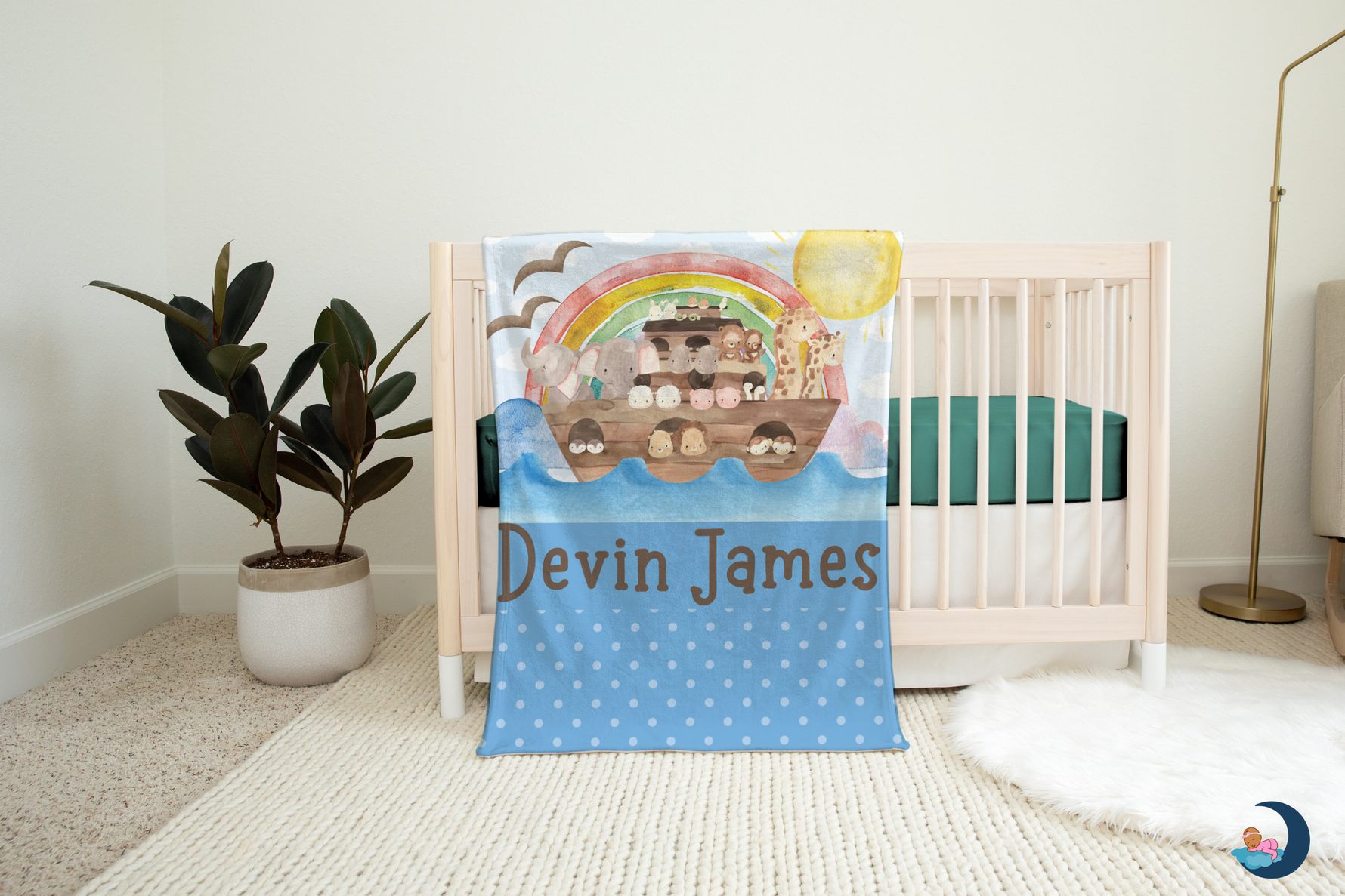 Wrap your little bundle of joy in warmth and comfort with our personalized baby blanket. This traditional Noah's Ark theme adds a familiar touch to your nursery décor, while the customized options allow you to create a one-of-a-kind keepsake for your baby.