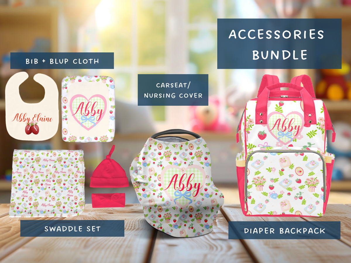 Make every outing and cuddle session extra special with our Personalized Baby Accessories Bundle. Thoughtfully designed for style, comfort, and convenience, this bundle includes everything new parents need to stay organized and keep baby cozy on the go.