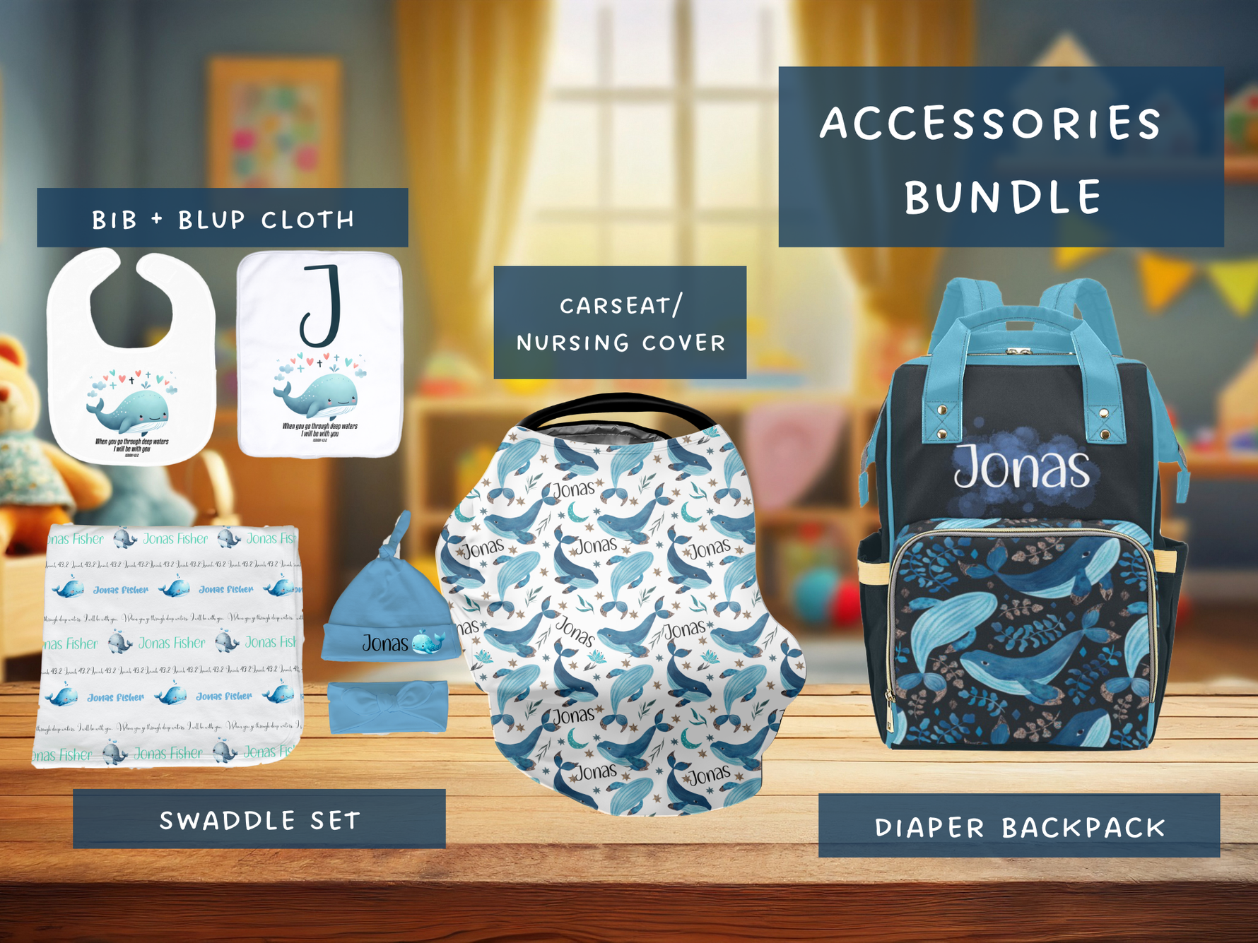 Make every outing and cuddle session extra special with our Personalized Baby Accessories Bundle. Thoughtfully designed for style, comfort, and convenience, this bundle includes everything new parents need to stay organized and keep baby cozy on the go.