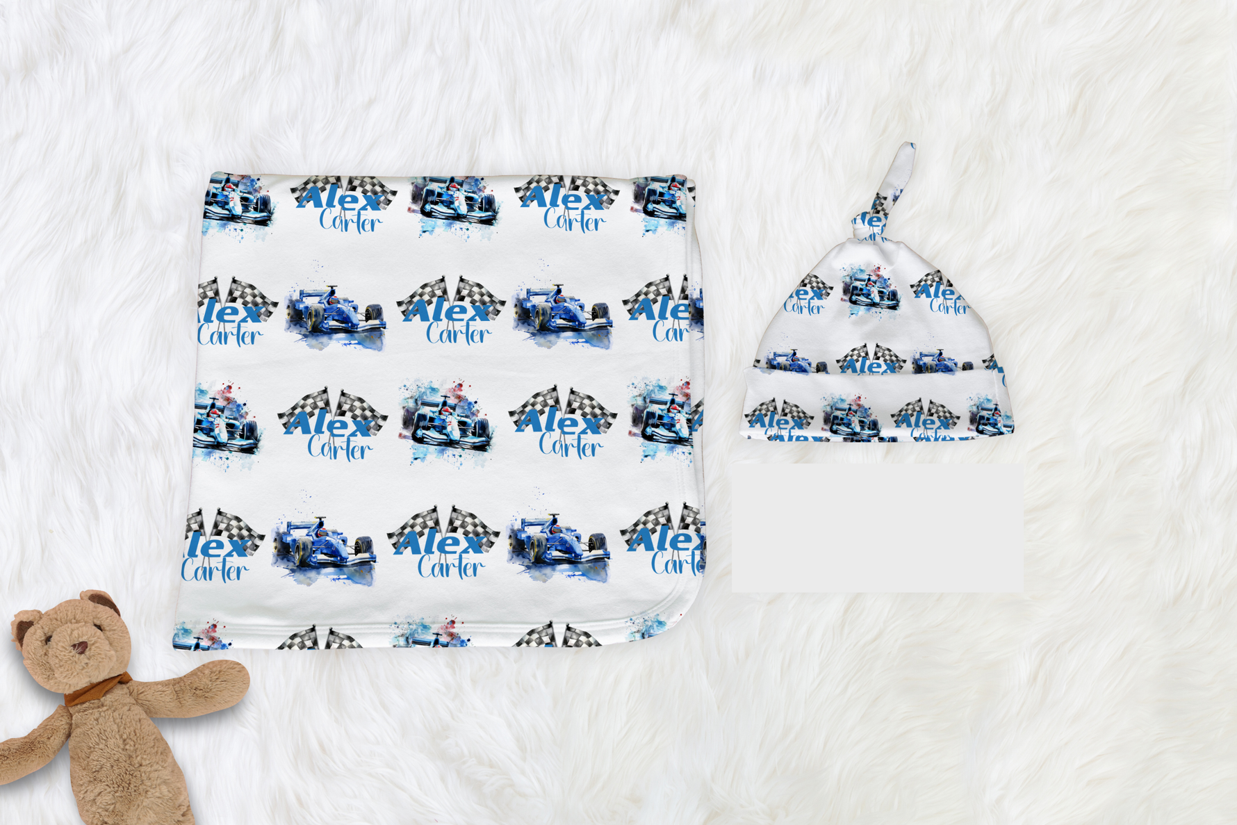• Swaddle Blanket with Matching Hat or Headband