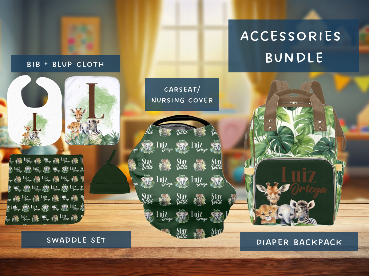 Make every outing and cuddle session extra special with our Personalized Baby Accessories Bundle. Thoughtfully designed for style, comfort, and convenience, this bundle includes everything new parents need to stay organized and keep baby cozy on the go.