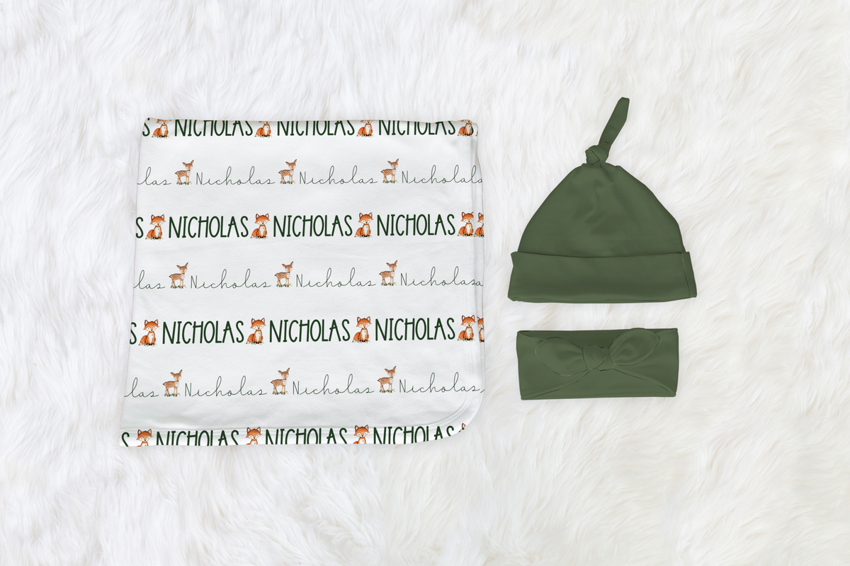 - Option 1: Swaddle Set (Swaddle + Headband or Beanie or Knotted Hat)