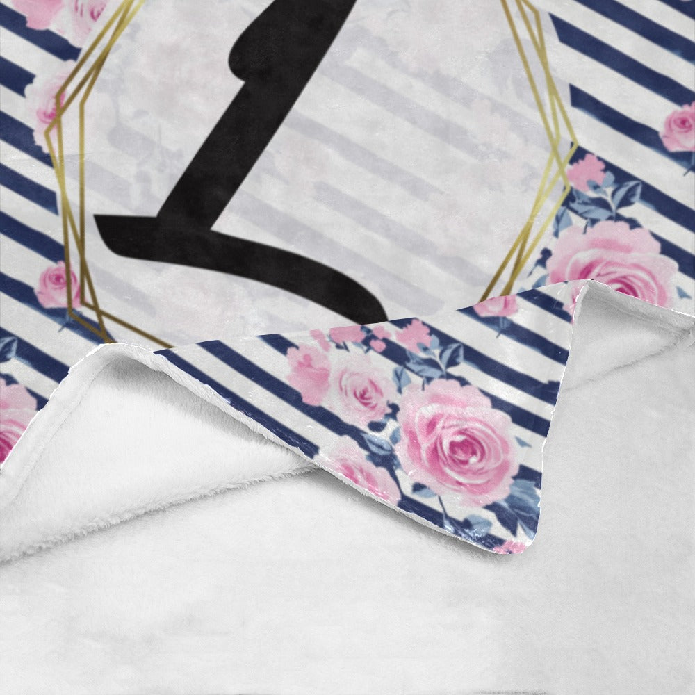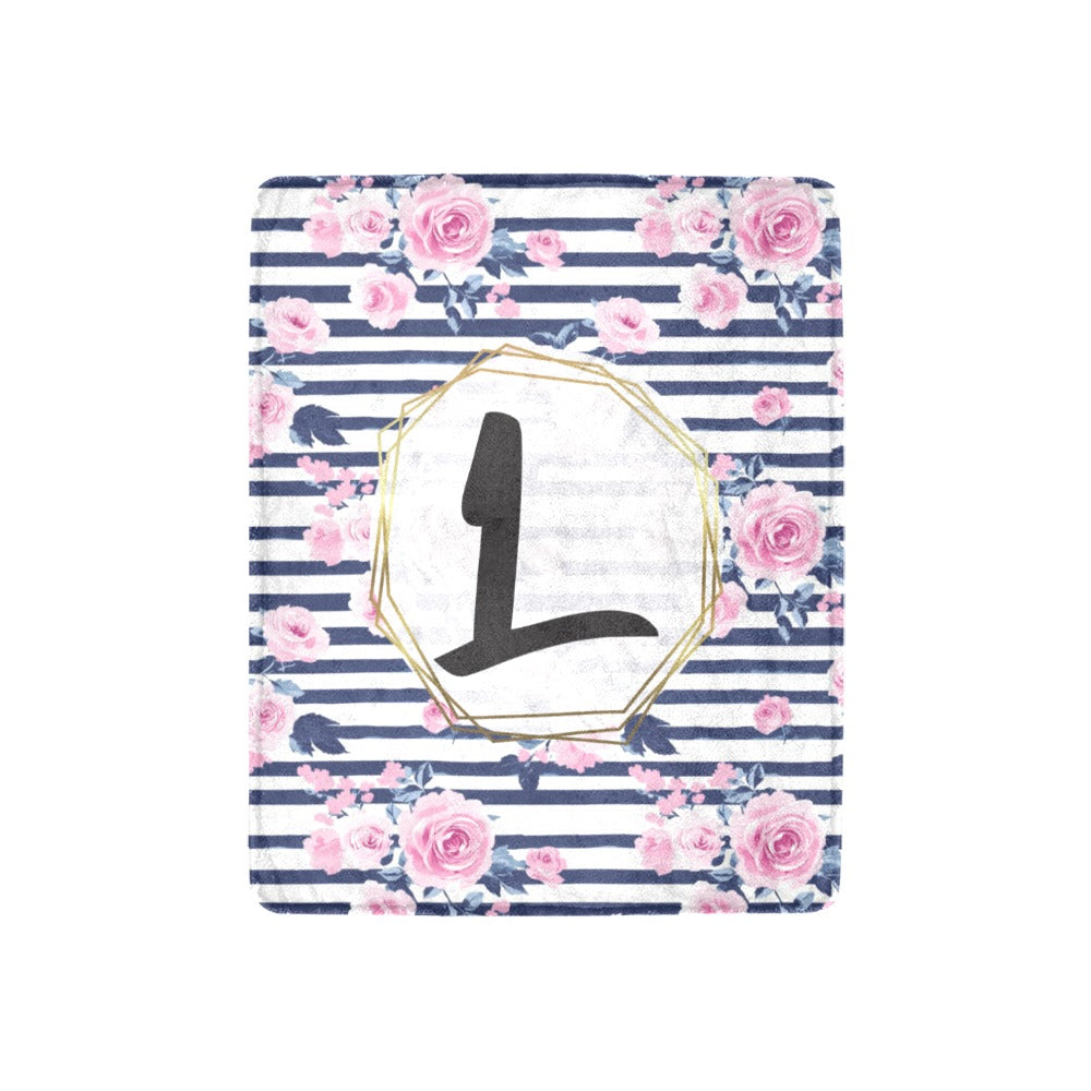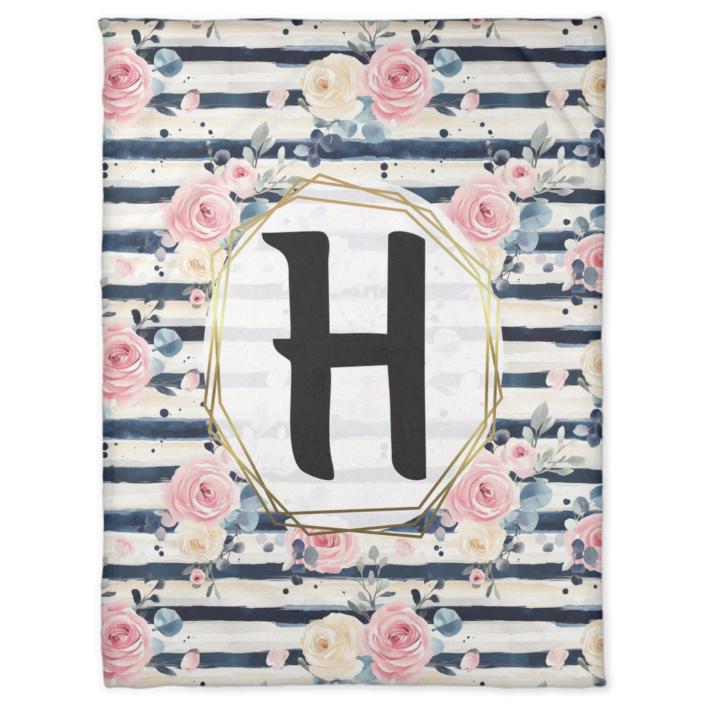 Striped Roses Monogram Blanket (B251)