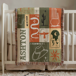 Wrap your little one in cozy western charm with this personalized baby blanket. Featuring a modern Southwest patchwork design with desert icons, warm earth tones, and your baby’s name, it’s the perfect keepsake for nursery styling, tummy time, and everyday snuggles. Soft, durable, and made just for them.